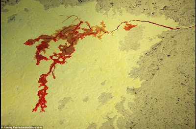 J Henry Fair's spectacular aerial images show the devastation man has wreaked on America. Pollution is exposed on a massive scale, creating striking vivid colours that highlight the scars of spillages, open cast mining, chemical and oil leaks, industrial decay and deforestation. Mr Fair, from New York, said the beauty of the pictures draws people in and then they learn the reasons for the vivid colours and the shapes.He said: 'I have been concerned about environmental issues for a long time as well as being fascinated by the graphic beauty of machines and the importance of industrial decay. 'All of these interests combine in this body of work. 'They came together a few years ago with the realisation that this subject matter could move people to potentially have the power to change our direction for the better. By the time I am actually photographing something, so much research has gone into the subject that my understanding of it forces me to see it for what it is. During the shooting process, I am looking to compose and create images that will captivate, so in some sense I am attempting to make a silk purse from a sow's ear. I have found that the reason this project has had so much success is because the beauty of the images initially draws audiences in; they are captivating in the same way that timeless pieces by the great abstract expressionists are. I think that if the initial beauty in the photographs was not present, the project would not have the same affect on people. Because the pictures are so beautiful, people want to learn more about what is going on in each image. Mr Fair has a photographic studio in New York and his images are available in his new book called 'The Day After Tomorrow: Images of Our Earth in Crisis.'